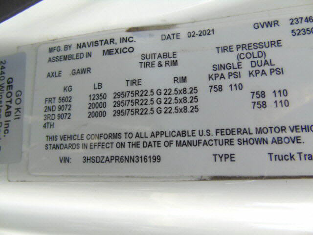 2022 INTERNATIONAL LT625 CUMMINS ENGINE, COLLISION MITIGATION SYSTEM 56 INCH HIGH RISE SLEEPER CAB